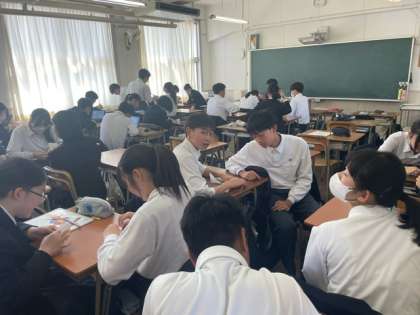 3年生は5限目に修学旅行に向けて平和セレモニー用の折り鶴を作成しました。