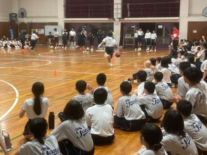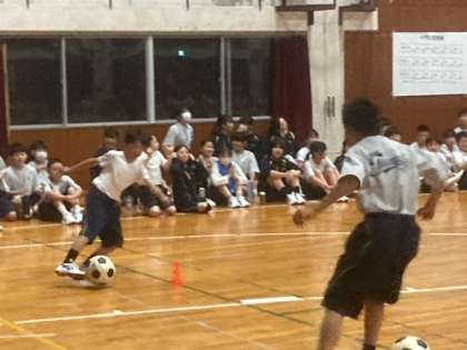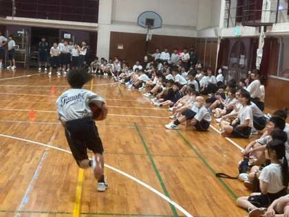 バスケ、サッカー、ラグビーと様々なドリブルでリレーをします。