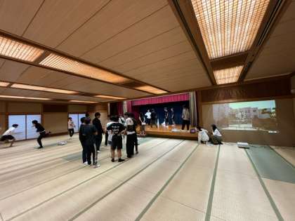 夜の全体レクリエーションに向けて、各グループがチェック中です。