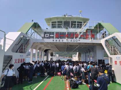 現在大久野島をフェリーで出発し、忠海港へ向かっています。