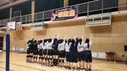 76期生の保護者のみなさんが女子バレーボール部のために横断幕を寄贈してくださいました。