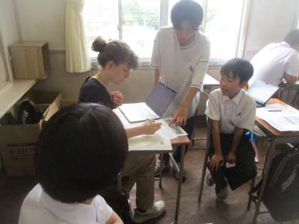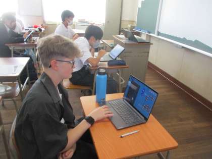大阪市立の中学校では、日本とスイスの交流を進め、相互の理解を深めることを目的に、日本・スイス青少年交流使節団の制度を設けています。今年は、田辺中学校に、スイスより3名の皆さんが来られることになりました。今日(16日)と明日(17日)の午前中、本校の生徒といっしょに授業を受けたり、給食を食べたりすることになっています。なお、3名の皆さんは、中学校2年生の学年ということもあり、2年生の教室で体験活動をすることになっています。写真は、午前中の授業の様子です。みなさんとても熱心に授業に参加していました。