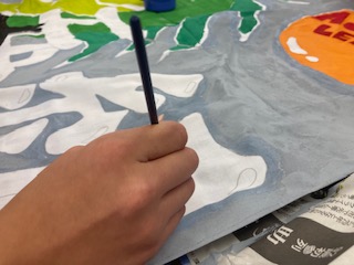 塗りたい色を作るのも、試行錯誤。出来上がった色を、みんなの思いを乗せて重ねていきます。