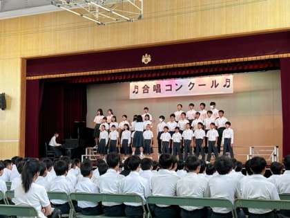 文化祭では1年生ので課題曲、金賞クラス1年4組の選択曲の合唱です。お楽しみに下さい!