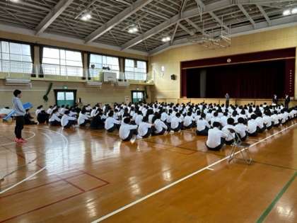 今日の学年集会では、体育大会の振り返りのお話がありました。また、前期体育委員の生徒たちは体育大会で自分の仕事をしっかりとやり遂げて各クラスをまとめることができていました。体育委員さんは学年の皆さんから温かい拍手をいただきました。