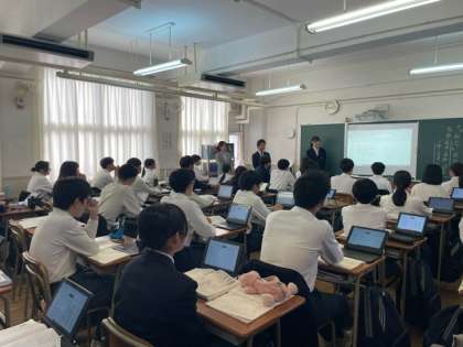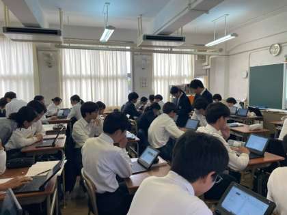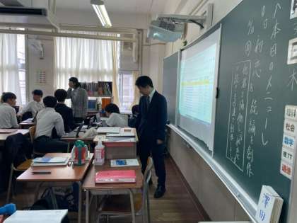 3年5組では国語科の三溝先生が公開授業を生徒と一緒に行いました。