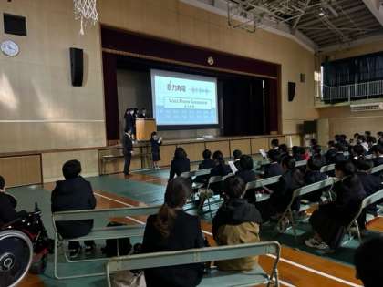 12/17(火)の3・4限の授業で東住吉支援学校と中央聴覚支援学校の3校でプレゼン発表を行いました。