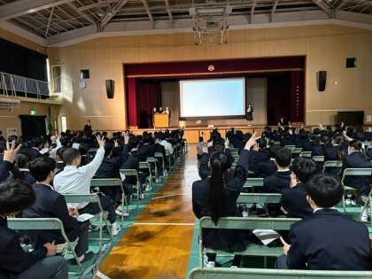 また、田辺中学校からは総合的読解力の発表で選ばれた各クラスのグループがプレゼン発表を行いました。持続可能な社会について様々な考えや工夫のある発表でした。