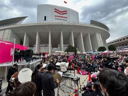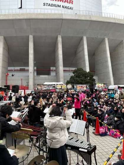 吹奏楽部は今日、セレッソ大阪のホーム開幕戦イベント「WAKU WAKUステージ」において演奏をさせて頂きました!!大変寒い日でしたが、沢山の方に演奏を聴いて頂きました。このような発表の機会を頂けて本当に嬉しかったです。これからも私達の演奏を聴いて頂けるよう積極的に活動していきます。