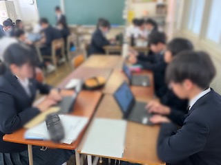 修学旅行ももうすぐ。自分たちのための観光パンフレット作りも今日で完成。それぞれ工夫を凝らしたりものが作成されていて、皆さんのセンスに脱帽です。