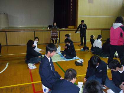 太鼓の合図に合わせて、1年生の先生方が