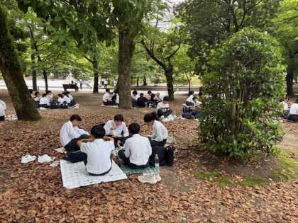 ?無事平和記念公園に到着し昼食を食べてます。
