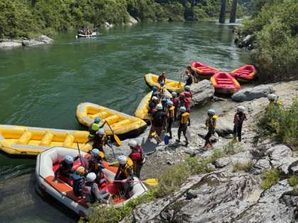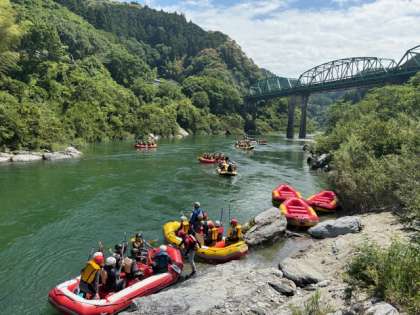 快晴に恵まれた最終日、いよいよお楽しみのラフティングがスタート!
