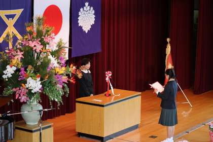 「新たに始まる中学校生活で、部活動や新しい仲間との出会いに心躍らせています。小学校の頃は、先生方に拓いていただいた道を進むだけでした。中学校では一人ひとりが自立して自分たちで道を拓くことを目標に、私たちは様々なことに挑戦していきます。これから新しいことも増え、難しいこともありますが、失敗を恐れずに立ち向かいます。挑戦して得たものは自分自身の力になるので、しっかり身につけて、他のことにもプラスになるようにしたいです。さらに、様々な活動には、みんなで協力して、お互い助け合い、励ましあいながら取組みます」(抜粋)