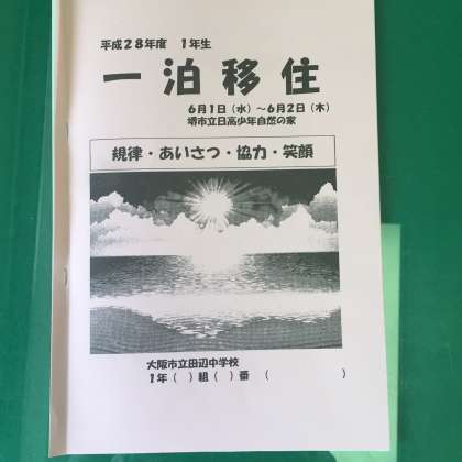 中学校入学後初めての大きな行事ですが、ルールを守り、仲間と協力して有意義な一泊移住にすることを期待しています☆