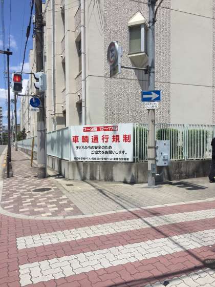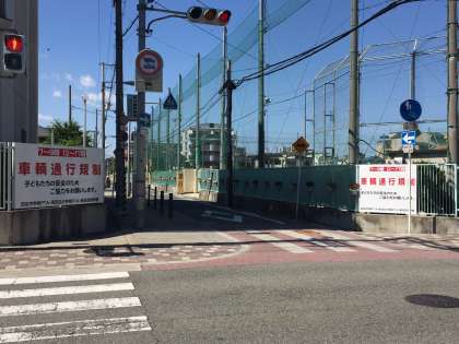 田辺中学校の前から南田辺小学校に向かう道路には交通規制があります。