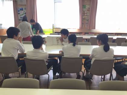 「読んで・・・」と頼まれ、「いいよ」と応えて読み手となっている3年生。