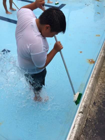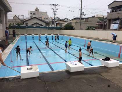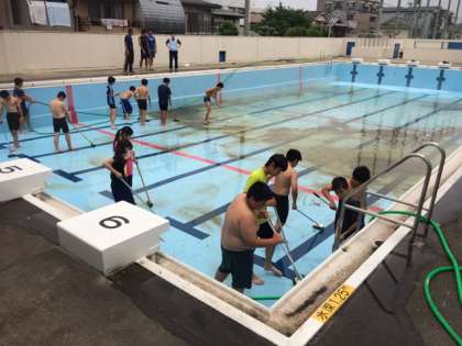 それに先立ち、ラグビー部の皆さんが、今年も体育科の先生方と一緒にプール掃除をしてくれました。