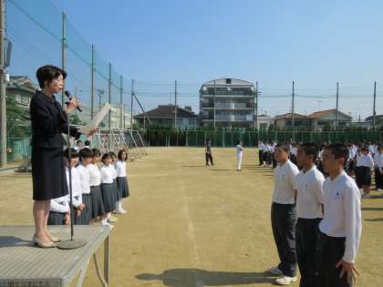 1年生が一泊移住で頑張ったこと。先週は3年生が初の『3年生チャレンジテスト』に一生懸命に取組んだことなどを話しました。