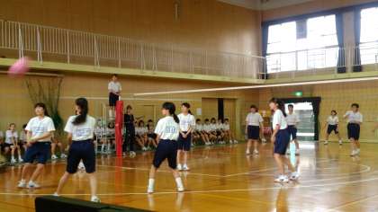 5,6時間目に2年生の球技大会を行いました。あいにくの雨のため、体育館で男女ともソフトバレーボールをしました。得点が入るとみんなですごく盛り上がっていました。優勝は2組、準優勝は4組でした。おめでとう!