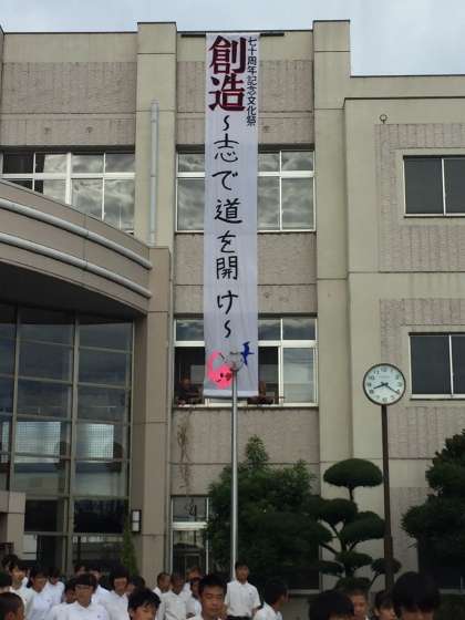 生徒会の皆さんが、70周年記念文化祭のテーマを垂れ幕にしてくれました。素敵な垂れ幕です。ありがとう・・・☆