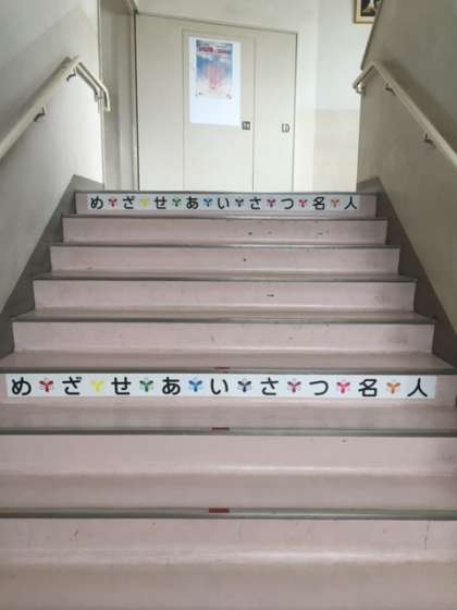 玄関ホールにあいさつの事を掲示したり、元気アップコーディネーターさんや管理作業員さんにお願いして、階段にも呼びかけを掲示してもらいました。