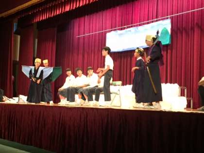 田辺中学校の生徒の皆さんは、夢を持ち、頑張ってほしい・・・と三武将とザビエルからメッセージがありました。