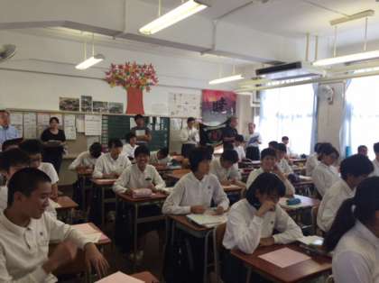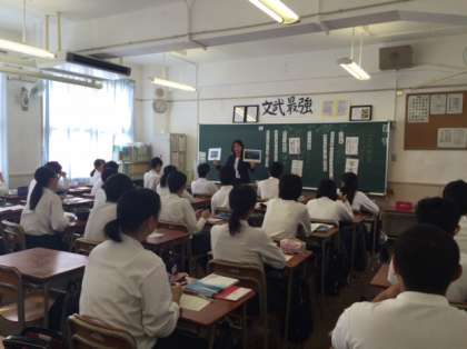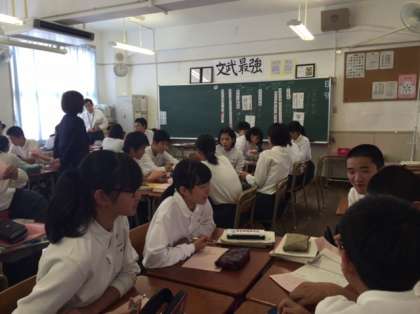 5時間目は3年4組で国語の授業。生徒たちがしっかりと挙手をして、どんどん発表する姿がとても頼もしかったです。