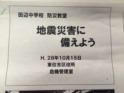 地域の防災リーダーさん、東住吉区役所、東住吉消防署、大阪市危機管理室と連携して『防災教室』を開催しました。