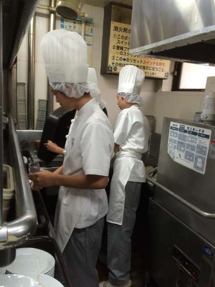 次から次へとあがってくる食器を素早く片付けて洗っていました。
