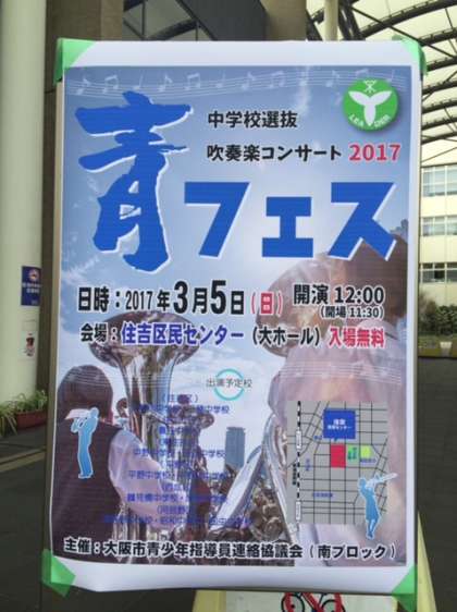 住吉区民ホールで青少年指導員協議会主催の『青フェス』が開催されました。田辺中学校からは吹奏楽部が出演し、素晴らしい演奏を聴かせてくれました。
