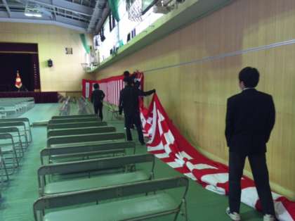 明日の卒業式に向けて、午後から1・2年生が会場準備をしてくれました。