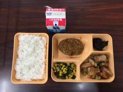 各クラスの様子を見てまわりました。1年生から「何で冷たいんですか?」という質問が出ました。「冷やしてあるからよ」と応えると、?!?!・・・という感じ。「温めてあったら温かいし、冷やしてあったら冷たいからね」と説明をすると、温かい給食に慣れている1年生にとっては、温かいはずのおかずが冷たいことに、疑問の眼差し!