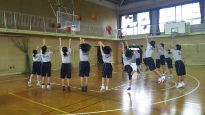 一枚目は女子バスケットボール部のシュート練習の様子です。