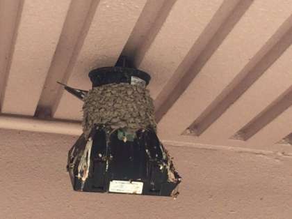 つばめが巣を作っていますが、マンションと呼び、大切にしています。