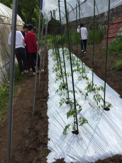農家さんでトマトのお世話を頑張っていました。