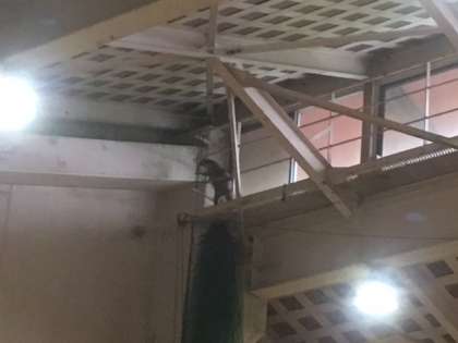 体育館の天井に突然アライグマが現れ、生徒も職員も騒然となりました!