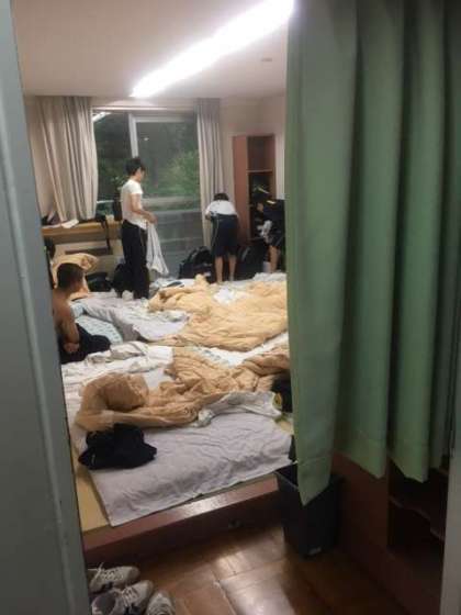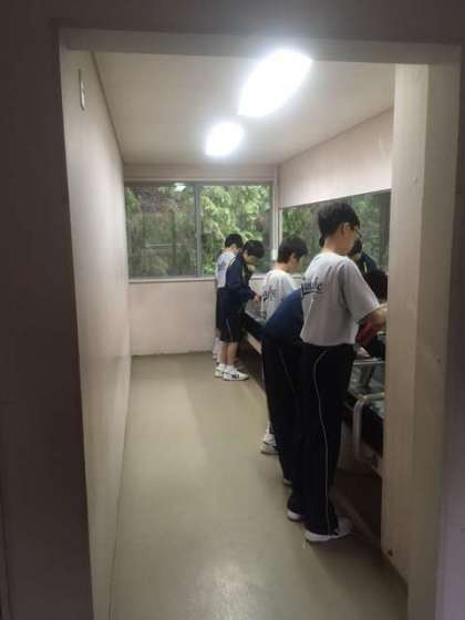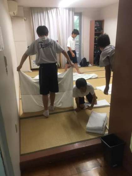 昨夜はぐっすり寝たので、みんな元気です!歯を磨いて…寝具を片付けて…部屋掃除!健康チェックに破損調査もあるでー!「落ち着いてやりや〜」