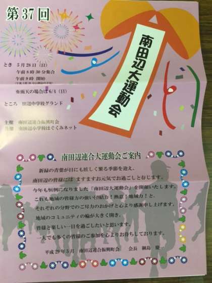 28日(日)に、本校運動場で第37回 南田辺大運動会が開催されます。