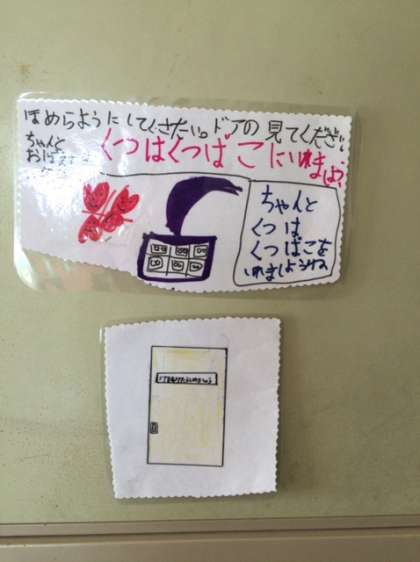支援学級の教室の前は生徒たちの作品を掲示しています。