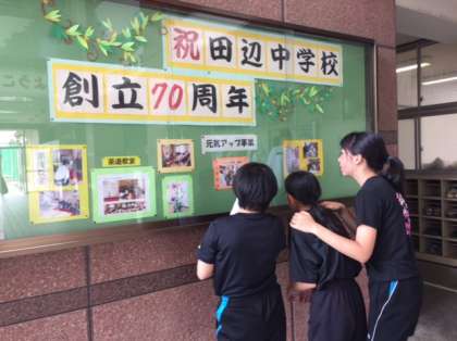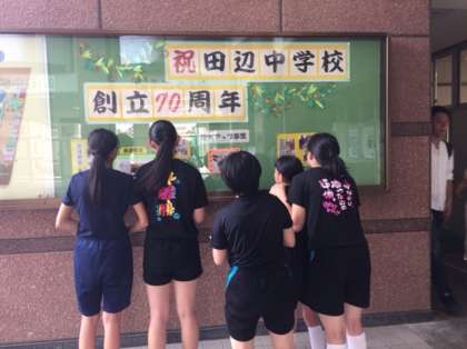 田辺中学校では、まず、今現在、学校と地域社会がどのように繋がっているか・・・を明確にするために、掲示板を活用することにしました。
