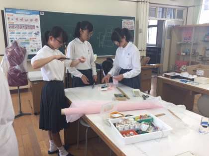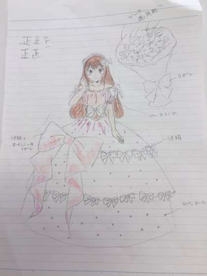 自分たちでデザインしたドレスの作成。