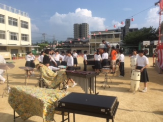 生徒会のてん“ワッフル&ジュース”と 吹奏楽部が準備中です??