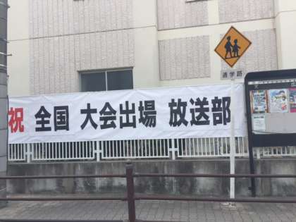 横断幕が出来あがり、管理作業員さんが早速、取り付けてくださいました☆