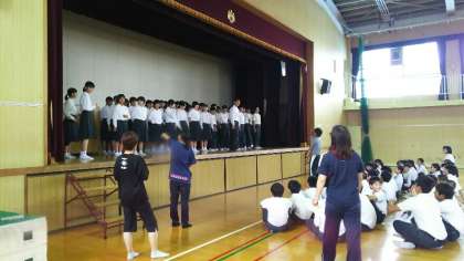合唱コンクールの取り組みとして、本日は各クラスで入退場の練習をしました。