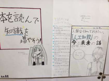 文化委員のポスター。「本を読んで知識を増やそう!」はなかなか優れた作品でした。