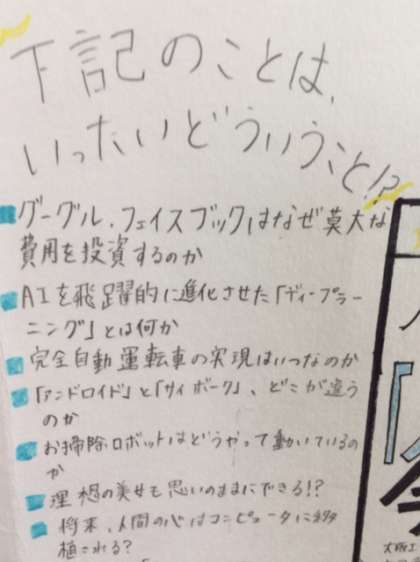 『人工知能の今と未来』について、設問コーナーを設けて本に導いています。