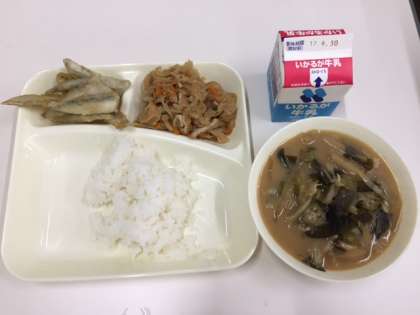 【いわし天ぷら・みそ汁・切り干し大根の炒め煮・ごはん・牛乳】 今日も美味しくいただきましたよ☆