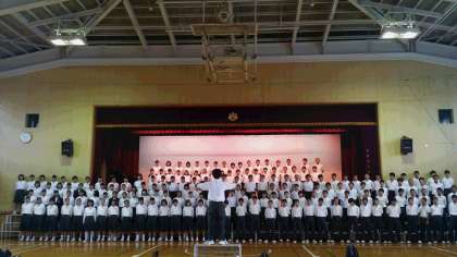 1年生は1限目に文化祭での全体合唱の練習を行いました。
