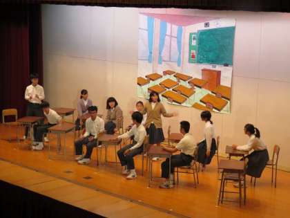 配役、大道具、小道具など係でしっかりと分担して劇を作りあげていました。
